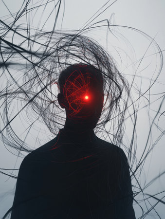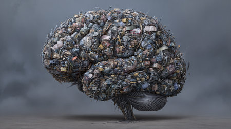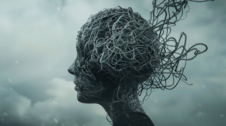 Abstract concept of brain consuming excessive thoughts symbolizing overload.