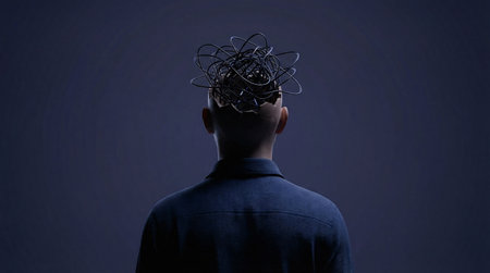 person feeling overwhelmed, with anxiety symbols radiating from their head. Generative AI