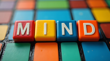 Letter tiles spelling MIND on a clean backdrop symbolize ideas and awareness. This image evokes themes of creativity, thinking, and personal development.