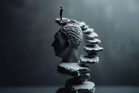 This stock illustration depicts the intricate and multifaceted nature of depression, capturing the diverse range of emotions and states of mind that individuals with this condition may experience.