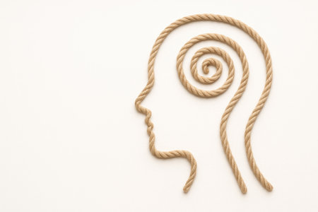 The profile of the head is made of rope with a spiral of thinking. Space for text