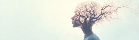 A silhouette of a head reveals an abstract decision tree, symbolizing cognitive processes The intricate branches represent interconnected choices, possibilities, and thought This visual metaphor highlights complex decision-making within the mind, inviting contemplation on internal navigation The light background emphasizes the tree's delicate structure AI Generative