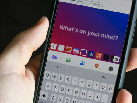 Milan, Italy - June 28, 2020: close up on a modern smarphone screen, newly introduced Facebook post reactions are visible on screen.