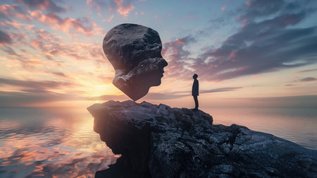 Silhouette of a Head in Tranquil Surroundings Depicting Inner Peace. Concept Tranquil Silhouette, Inner Peace, Serene Setting, Mindfulness Portrait, Contemplative Harmony