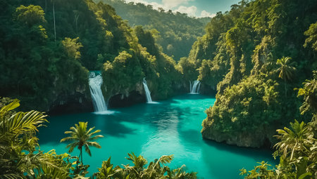 Jungle waterfall cascade in tropical rainforest, amazing nature