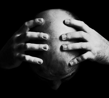 Man holding his head. B&W. Strong grains.