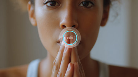 Calm woman with closed eyes, dark hair, and soft natural light on her face, creating a peaceful and serene atmosphere; her expression is composed, reflecting meditation or relaxation