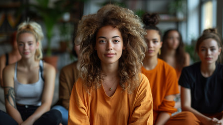 Diverse Women Meditating in a Group Session: Peace, Mindfulness, and Relaxation in Yoga Practice.
