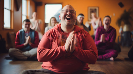 Tranquil yoga class: person with Down syndrome exudes tranquility.