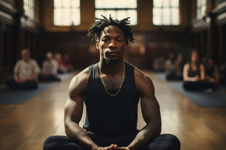 Portrait of African American man meditating in yoga studio