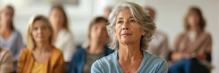 a Caucasian retired woman attending a health and wellness seminar