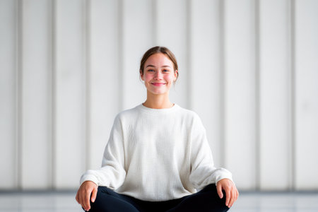 A serene woman meditates with her eyes closed, embodying tranquility and inner peace in a focused pose.