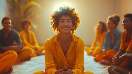 A group of individuals engages in modern meditation techniques focused on self love and relaxation.