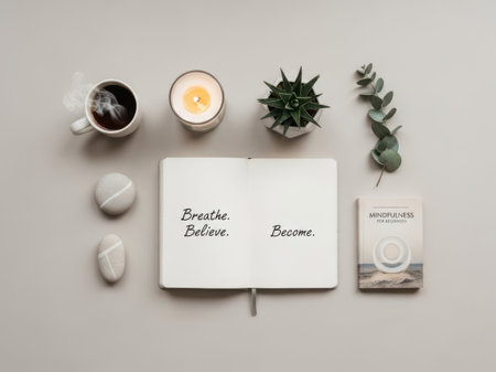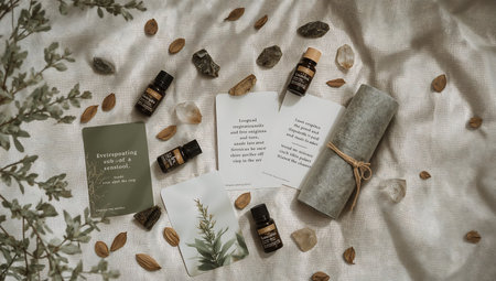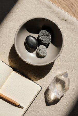 Serene minimalist style evokes tranquility and mindfulness through soft diffused lighting and harmonious neutral palette. Ideal for yoga studios, wellness coaches, fitness apps, meditation platforms, health blogs, and lifestyle brands promoting holistic practices and self-care routines. Precise textural rendering and balanced composition offer versatility for social... AI-generated illustration.