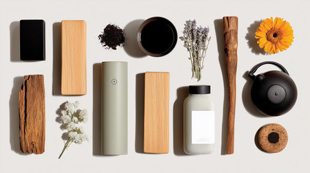 Discover a serene arrangement showcasing a yoga mat, incense holder, and dried flowers that enhances the calming atmosphere of any space. Perfect for relaxation and mindfulness.