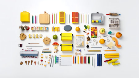 Generative AI : Collection of school supplies isolated on pure white background