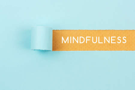 Mindfulness text on torn brown paper