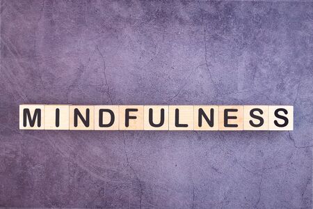 Word Mindfulness written on wooden cubes on a grey background