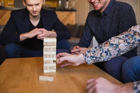 Board game with wooden bricks. block game, wooden tower for playing with friends
