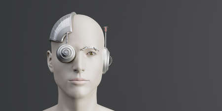 Portrait of Cyberpunk Trans human cyborg with advanced and futuristic technology 3d render 3d illustration