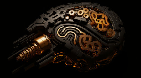 Brain made of gears, blending steampunk aesthetics with concepts of mind and mechanics. Perfect for themes of artificial intelligence, futuristic innovation.