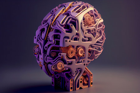 Human head made of cogs and circuits, concept image for artifical intelligence - Generative AI