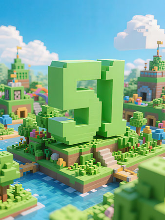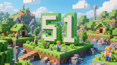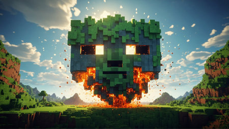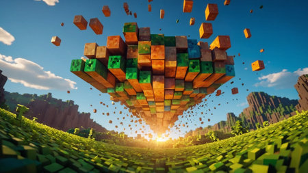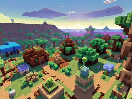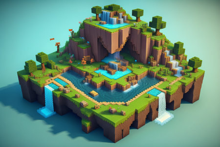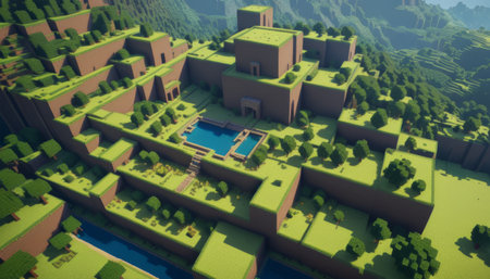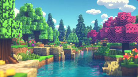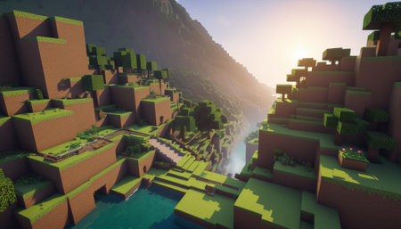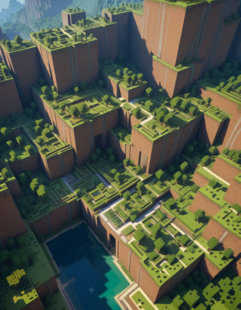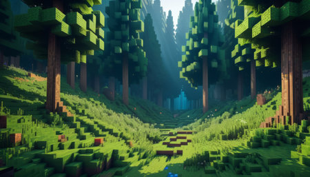 Minecraft-Style Aerial View of Green Valley