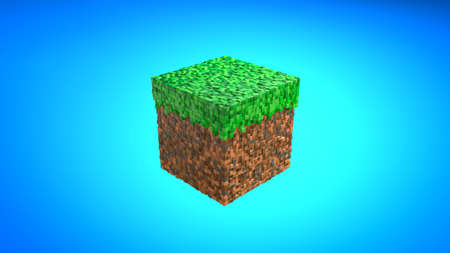 Pixel grass and ground background. The concept of games. 3D Abstract cubes. Depth of field. Concept of games minecraft