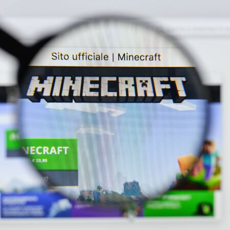 Milan, Italy - August 20, 2018: Minecraft website homepage. Minecraft logo visible.