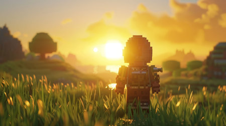 ArchaeoGamer, Pixelated Artefacts, Forgotten Code Languages, Unearthing the digital relics of a bygone era, deciphering forgotten scripts in abandoned game worlds, Photography, Golden Hour, Vignette, Rear view