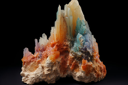 Colorful Quartz Crystal cluster gemstone. Beautiful crystals arrangement