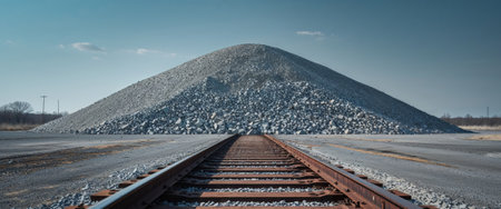 AI Generated. Industrial setting featuring a pile of crushed stone on tracks