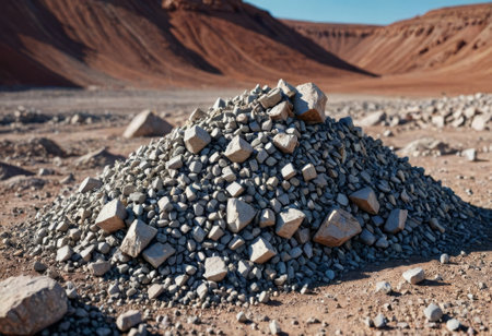 AI Generated. Massive Pile of Gray Rocks Under a Clear Sky - A Stunning Industrial Landscape