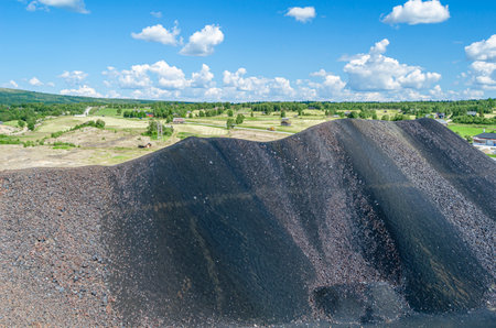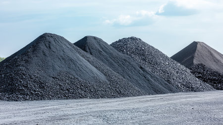 Coal piles at a mining site with a clear background and space for energy industry promotions.