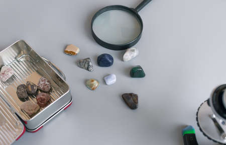 A tray of rocks and minerals with a label that says Original on it. The tray is filled with a variety of different colored rocks and minerals