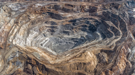 Massive Open Pit Mine Showcasing Layered Excavations and Machinery in a Mountainous Region During Daylight. Generative AI