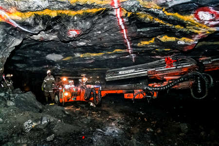 Coal mine. Coal mining in the mine. oal exploration and machine.