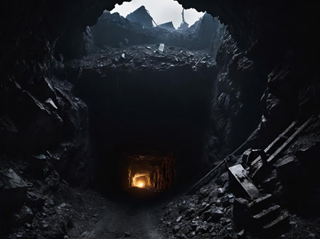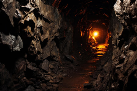 underground mine with glowing light and dark