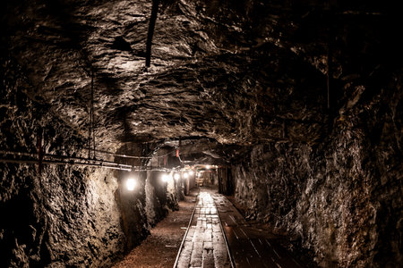 dark mine tunnels where crystals appear on the surface