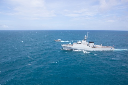 SATTAHEEP, THAILAND - June 21: H.T.M.S. Krabi, an offshore patrol vessel of the Royal Thai Navy test control system and speed test on June 21, 2013 in Sattaheep, Chonburi, Thailand.