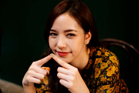 Portrait of a beautiful young Asian woman holding a cup of coffee