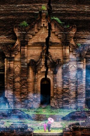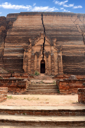Entrance in Mingun Pahtodawgyi pagoda - giant ancient unfinished stupa destroyed by earthquake. Myanmar