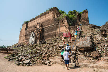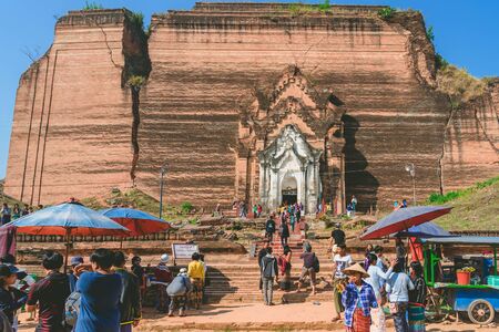 MINGUN-Myanmar, January 20, 2019 : Unidentified tourists come to visit and take photographs at the Ruined Mingun pagoda (Unfinished pagoda in Mingun paya Temple) on january 20,2019 in Mingun, Myanmar.