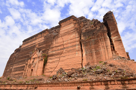 An ancient earthquake destroyed the giant stupa of Mingun Pahtodawgyi Paya at Mingun, Myanmar former Burma
