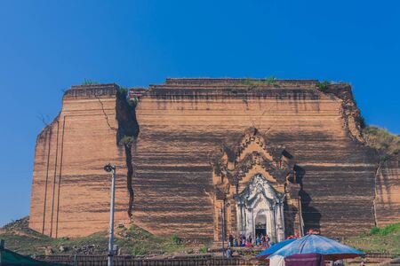 Ruined Mingun Pagoda is a massive unfinished pagoda built at the end of the 18th century, that was meant to be the largest pagoda in the Myanmar country. Mandalay, Myanmar, 11 August 2018