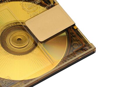 Yellow floppy disk and cd on white background