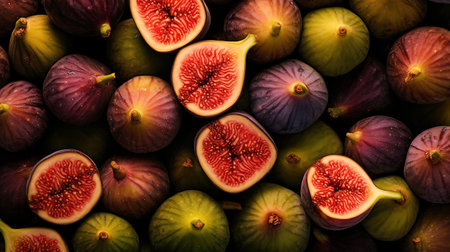 Realistic photo of a bunch of figs. top view fruit scenery