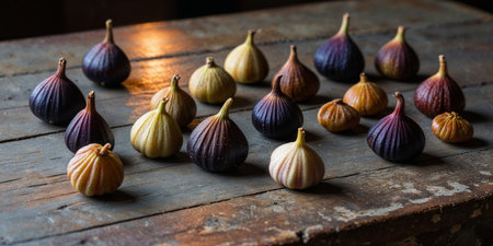 AI Generated. Fresh purple figs arranged on a light background