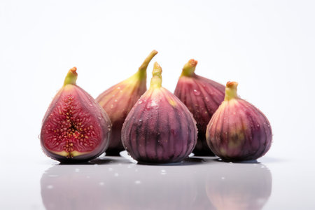 Generative AI : Fresh figs Fruit with half and quarter isolated on white background With clipping path