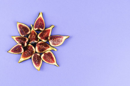 Fresh ripe fig on a purple background. Healthy mediterranean fruit with copy space